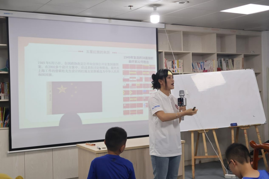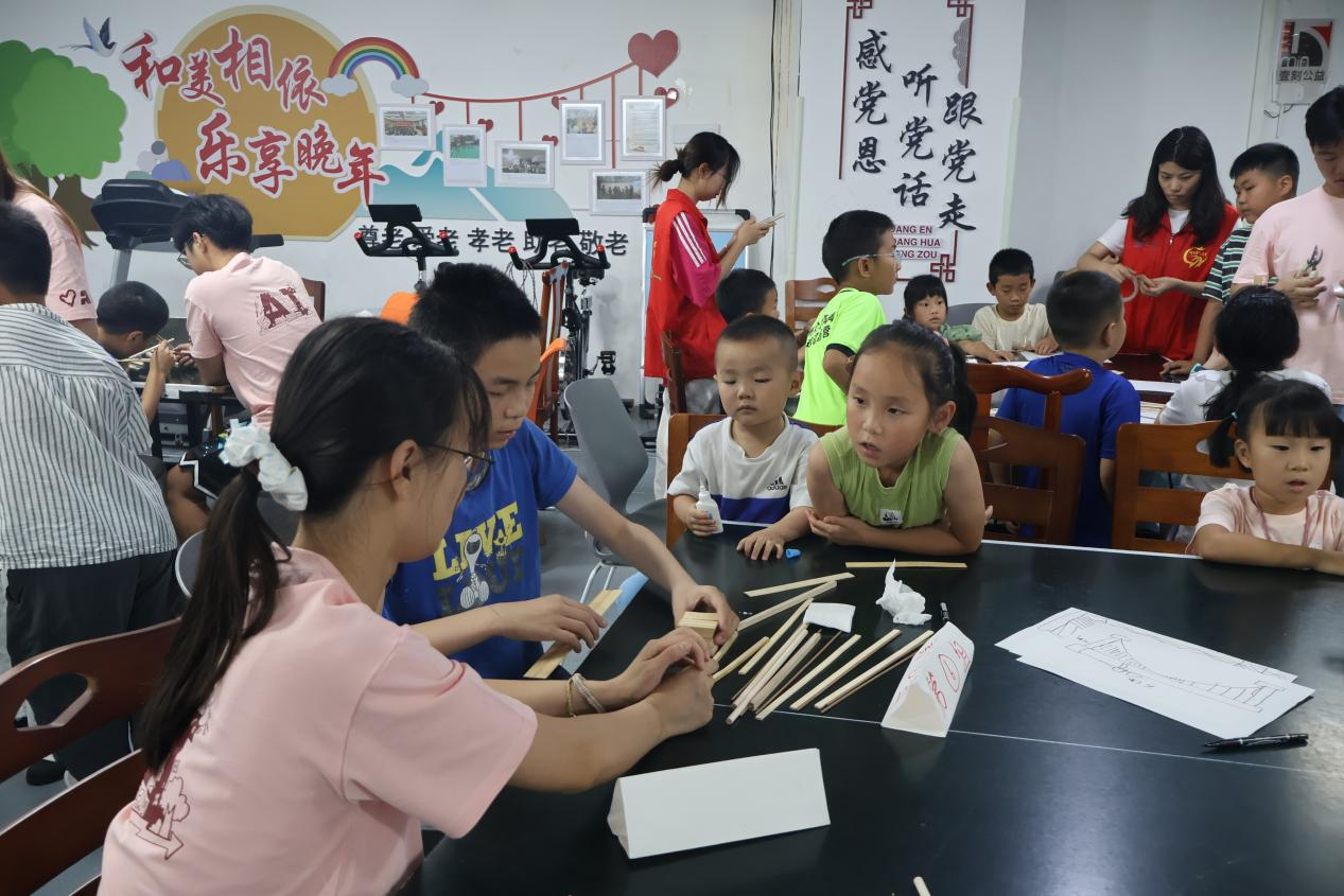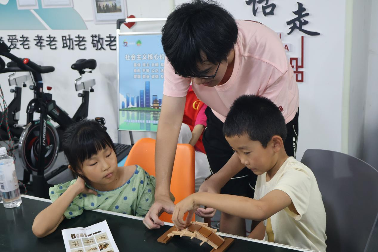 期间开展主题为“建筑奇遇记与红旗飘飘伴我成长”的科普课程。在“建筑奇遇记”部分,团队成员通过三角抗形变、纸拱承重、鲁班桥搭建等趣味实验,拆解拱形、三角形力学原理。在桥梁设计环节,鼓励小朋友们发挥创意,设计并制作特色桥梁模型,激发其对建筑文化的热爱以及对科学知识的探索精神。在“红旗飘飘伴我成长”部分,团队成员采用故事讲述、视频欣赏、手工制作等多元授课形式,帮助小朋友们认识五星红旗,了解国旗的颜色和图案组成及其含义,通过社区志愿服务活动,将爱国主义精神融入社区志愿服务全过程,引导学生深刻理解国旗背后的历史底蕴和文化内涵,激发他们的爱国热情和民族自豪感。