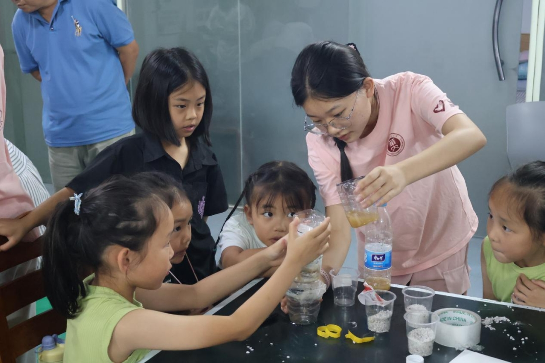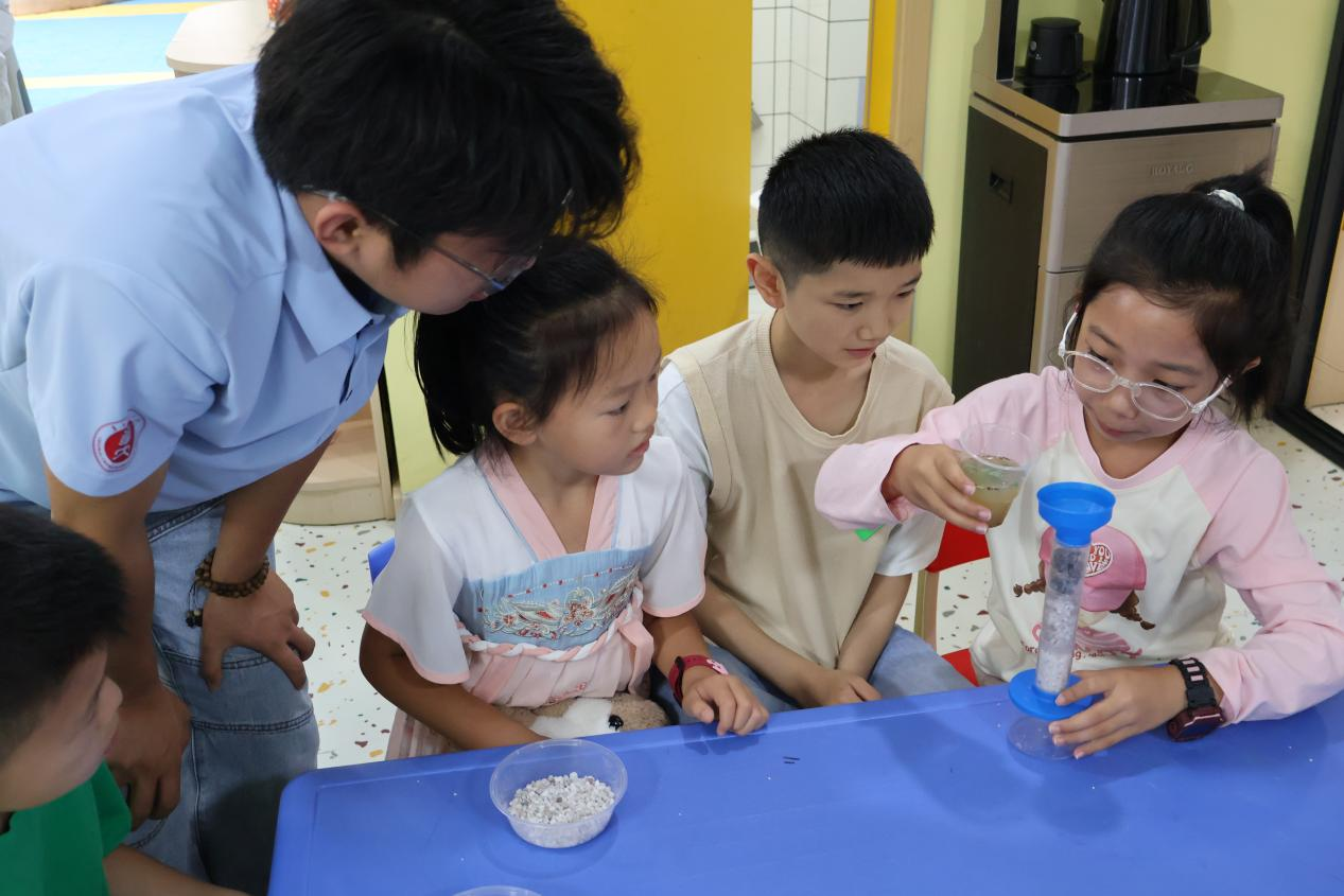 713717日,团队成员通过“理论讲解+实践操作”结合的方式,为学员系统普及污水处理与水资源保护知识。团队成员围绕污水的环境危害展开详细讲解,深入浅出地阐释了过滤、吸附等核心净水原理及实操方法,并指导大家动手制作简易净水器。从知识学习到实践操作,在“学玩结合”的情境中帮助社区儿童系统掌握了净水知识,提升了动手实践能力,更有效增强了大家的环保意识。