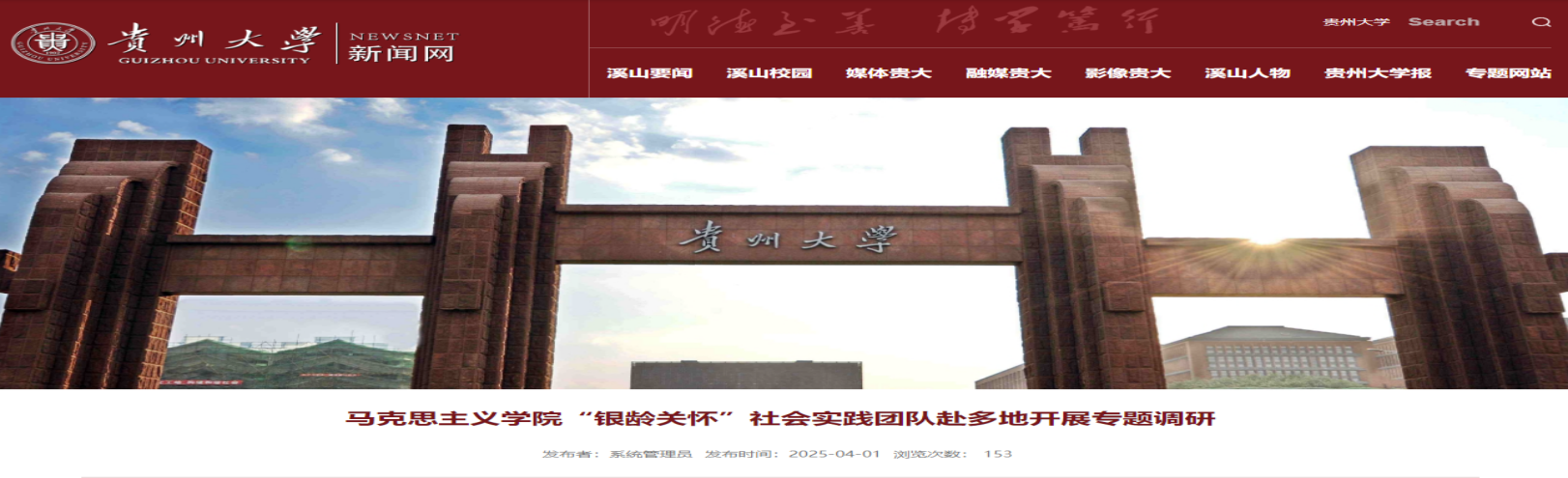 贵大新闻网讯(通讯员 田乔睿)为贯彻落实《国务院关于推进养老服务发展的意见》及《贵州省养老服务条例》精神,今年1月至3月,我校马克思主义学院“银龄关怀”社会实践团队赴六盘水、遵义、贵阳等地开展养老服务体系专项调研。此次调研旨在了解当前有关普惠型养老、旅居的相关现状,厘清养老服务体系建设面临的困境,以此为基础提出相应对策建议。