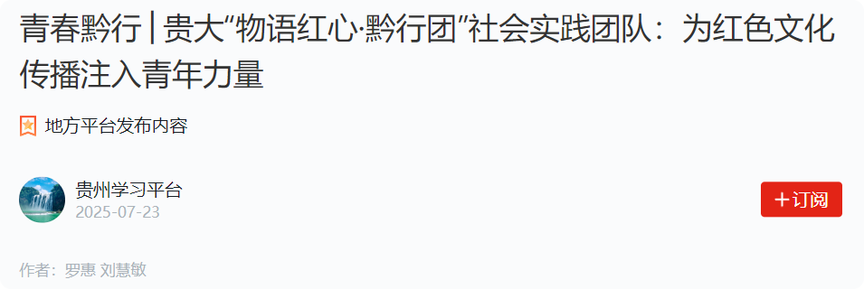 “让革命文物说话,让历史现场发声”。贵州大学“物语红心·黔行团”将持续以青年视角挖掘和讲好红色故事,在新时代红色文化传播中挺膺担当,在赓续红色血脉中淬炼初心使命。