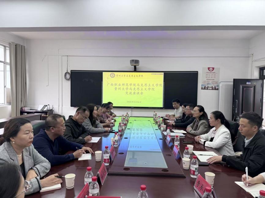 2025年9月26日,广西职业师范学院马克思主义学院黄艳副院长一行12人来院交流座谈。学院蒋红霞书记及5名教师代表参与了此次交流座谈,座谈会由蒋红霞主持。