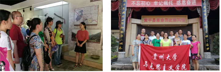 为全面落实党的十九大精神和中央《关于进一步加强和改进新形势下高校宣传思想工作的意见》中提出的新要求、新举措,丰富我院教师的社会实践经验,拓宽教学研究视野及加强基层党支部建设,以我院教工第二支部为主的10名教师组成调研小组,在院领导及黄平县人大机关的大力支持与协助下,于2018年7月12-13日赴黔东南州黄平县,开展了支部建设的系列活动以及扶贫攻坚的相关调研。