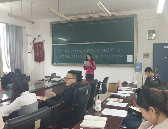 二、专题讨论环节:4月7日下午是第一次专题讨论交流,学员们课后认真学习《全国教育大会》和《贵州教育大会》精神,紧紧围绕着这两个主题撰写心得体会并在课上积极发言。4月14日下午为第二次专题讨论交流,学员们课后自行学习《中共中央关于加强党的政治建设的意见》和《中共贵州大学委员会贵州大学2019年工作要点》这两个文件,并撰写心得体会,在课上积极发言。
