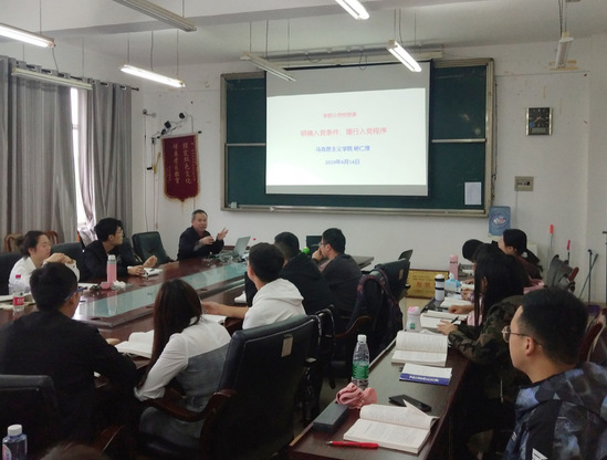 一、教师授课环节:4月6日上午,由马克思主义学院李传兵教授为入党积极分子授课,主题是《党的光辉历程》;下午由马克思主义学院党委书记杨仁厚老师带领学员们解读《党的最高理想和奋斗目标》。4月7日上午由机关党委杨婷书记和马克思主义学院院长张国安老师为入党积极分子进行讲座,主题分别为《党的性质、宗旨和指导思想》和《党的作风和纪律》。4月13日上午,由马克思主义学院李传兵教授和卢正涛教授为学员们带来《中国特色社会主义》和《党的组织制度》精彩的讲座;下午由马克思主义学院郭红军教授为学员们解读《党的十九大精神和习近平新时代中国特色社会主义思想》。4月14日上午,由马克思主义学院党委书记杨仁厚老师和马克思主义学院院长张国安老师给学员们带来《明确入党条件、履行入党程序》和《学习遵守新党章,做合格共产党员》的专题讲座。