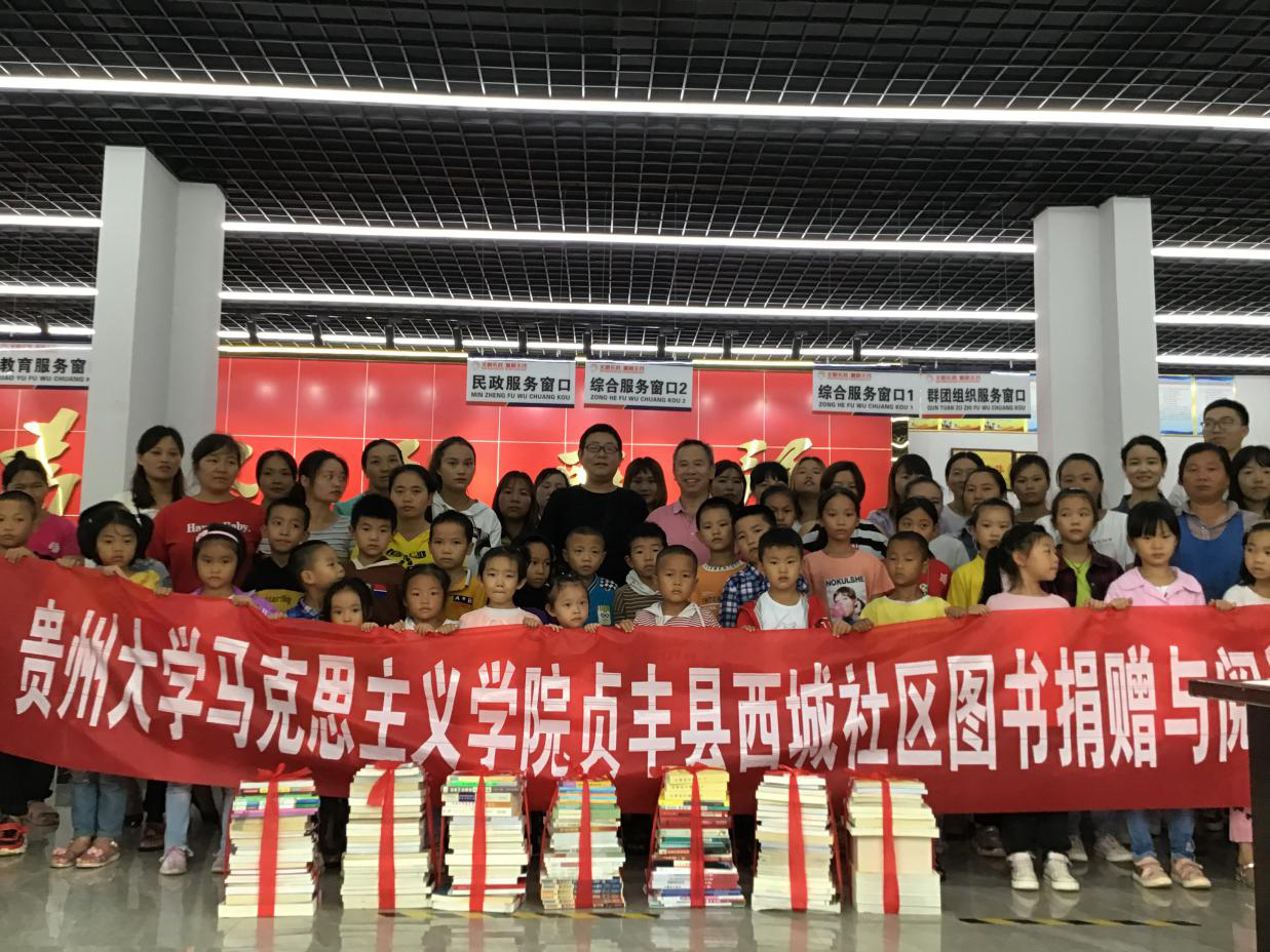 2020年8月21日,万象城网页版党委书记杨仁厚带领本院研究生一行七人前往黔西南州贞丰县丰茂街道西城社区进行图书捐赠与阅读指导活动。西城社区系贞丰县扶贫搬迁安置点,为我院在贵州省脱贫攻坚事业中对点帮扶单位,本次活动意在加强和巩固西城社区文化建设。