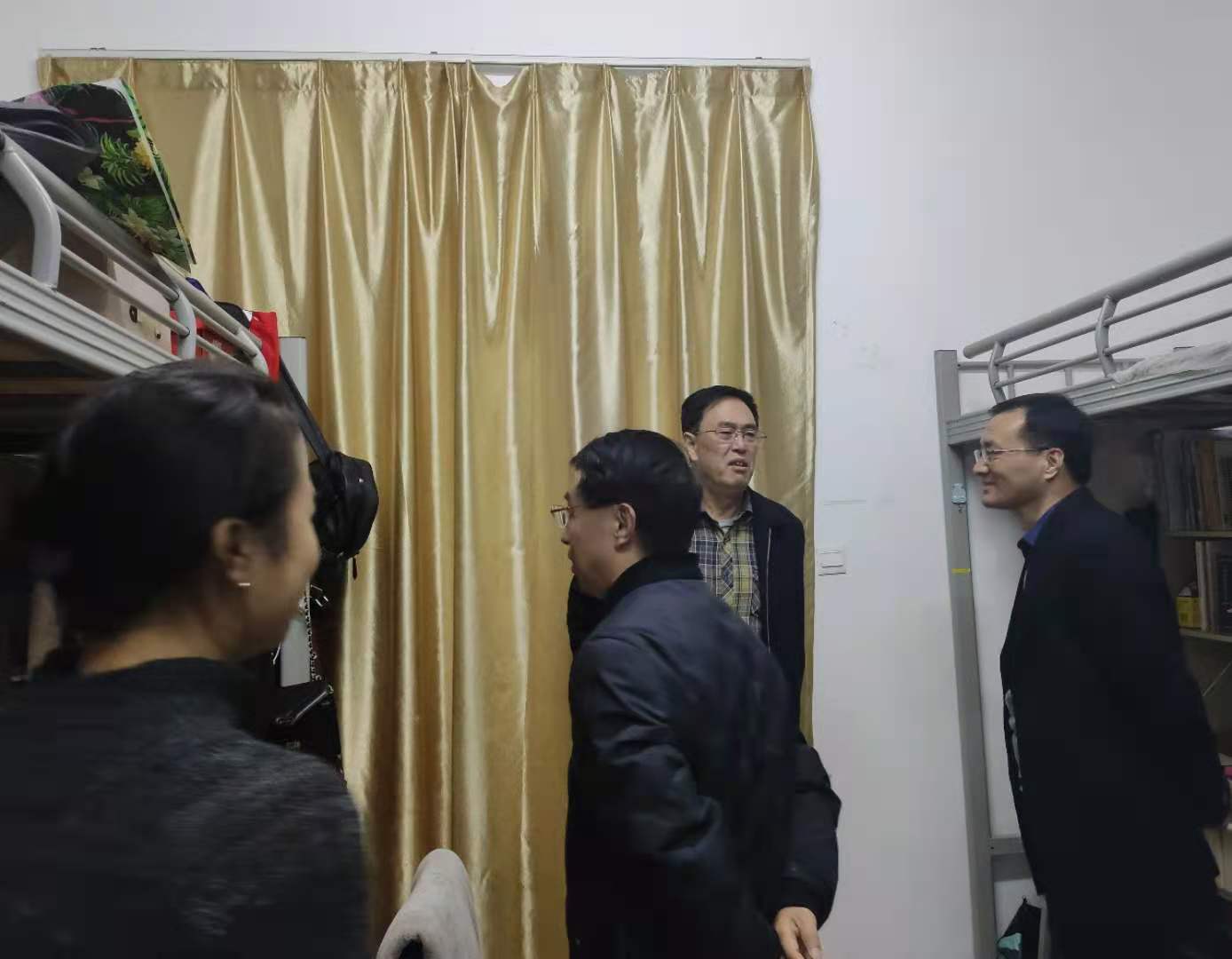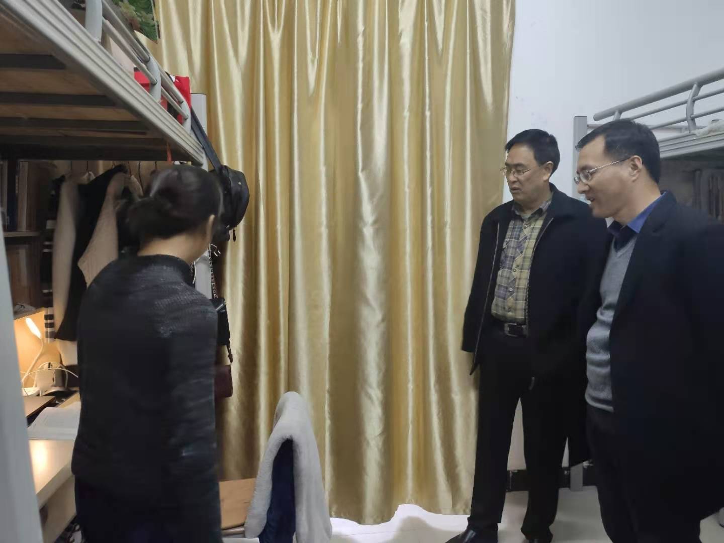 2020年11月6日周五下午四时五十分,马克思主义学院张国安院长、郭红军副院长、卢正涛副院长以及研究生科李玥老师为了解学生宿舍的用电安全情况,随机对研究生宿舍进行抽查。本次检查主要针对宿舍有无私拉乱接、使用大功率电器设备等违规现象。总体而言,情况较好,没有发现违规使用电器的情况。除了检查安全用电情况,学院领导还询问了学生有关学习、生活方面的问题,与同学们分享自己学生时期的趣事。通过专项检查,学院对学生安全用电情况有了进一步了解,提高了学生的安全意识,充分体现了学院对学生的关怀。