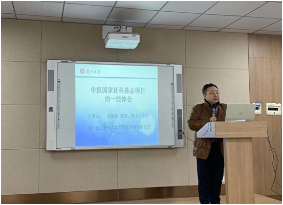为做好我院2020年度国家级科研项目的申报工作,切实提高我院教师科研项目申报质量。12月18日下午,我院在逸夫楼517举办了国家社科基金项目申报辅导报告,邀请贵州大学哲学社会科学研究院院长崔海洋教授为我院教师作专项辅导。讲座由李传兵教授主持,学院全体教职工参加了此次讲座。